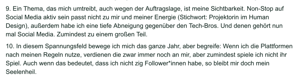 Also, was will ich tun? Blogposts schneller posten, mögliche Angebote nicht zerdenken, Instagram- und LinkedIn-Posts einfach rausschicken. Dazu gehört auch das Quiz, das ich für Q1/2026 plane. Na, mal schauen. Ich lasse mich von mir selbst überraschen.